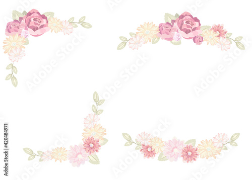 flower, pink, frame, floral, nature, white, rose, abstract, pattern, illustration, decoration, design, leaf, beauty, card, watercolor