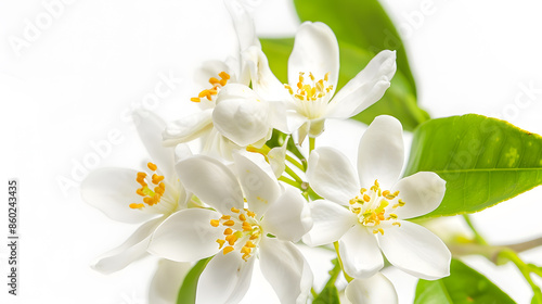flowering citrus Spring white fresh orange tree flowers isolated on white background : Generative AI