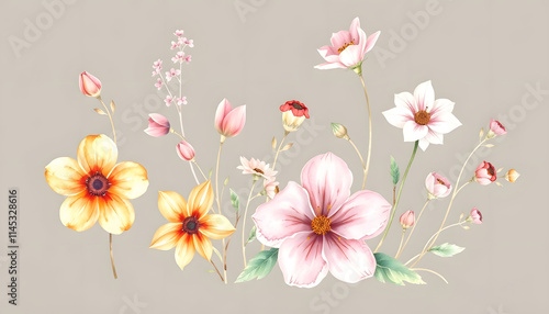 flower, watercolor, illustration, hand-drawn, digital, composition, element, botanical, nature, colourful, painting, artistic, floral, beautiful, design, decoration, art, vibrant, delicate, hand-made, decorative, bouquet, garden, summer, spring, leaf, flower petals, bloom, blossom