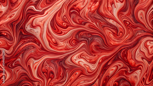 Flowing crimson shades intertwine, creating a captivating abstract design, with scarlet hues blending into a mesmerizing swirl, ideal for modern backgrounds and artistic projects.