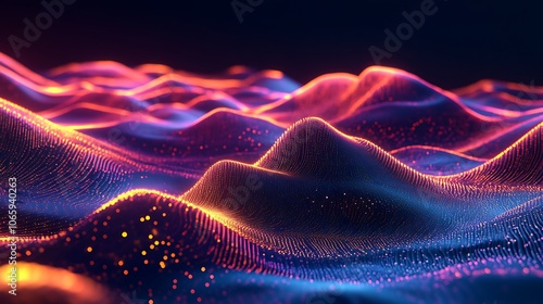 Flowing Metallic glass Waves in Neon Blue and Pink on Dark Background - Abstract Design Concept