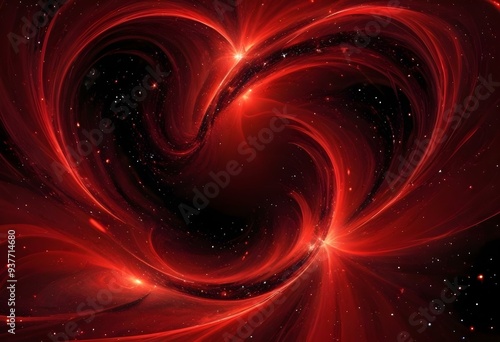 Flowing red, blue and black abstract background with soft, wavy shapes and subtle sparkles
