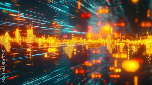 Fluctuating financial trends global market dynamics abstract art digital realm aerial perspective gigapixel concept
