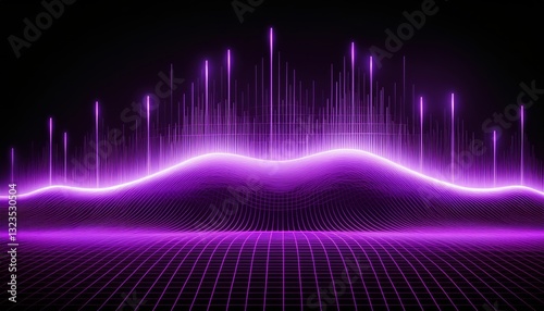 fluctuating vibrant glowing digital waveforms on a black grid background