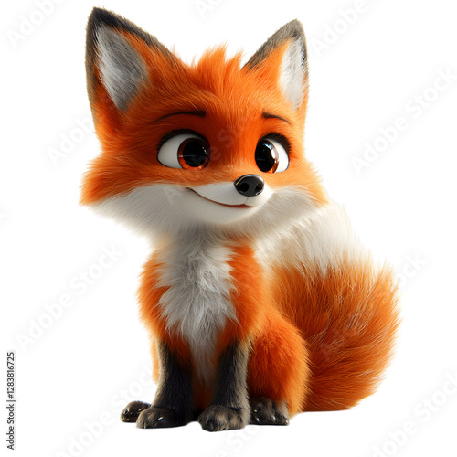 Fluffy 3D Cartoon Fox with Glowing Tail and Soft Fur Isolated on Transparent Background