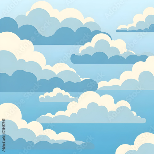 cloud, sky, floating, illustration, cartoon, blue, white, light, fluffy, weather, day, background, pattern, design, nature, air, clean, graphic, element, abstract, art, shape, heaven, dream, calm, peaceful, atmosphere, layer, soft, simple, decorative, concept, template, banner, poster, card, cover, print, textile, material, surface, wallpaper, scene, artwork, heavenly, climate, skyline