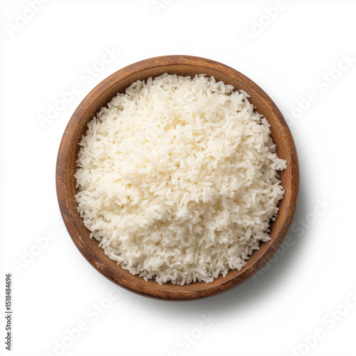 Fluffy Cooked Rice in Wooden Bowl , PNG isolated cut out image
