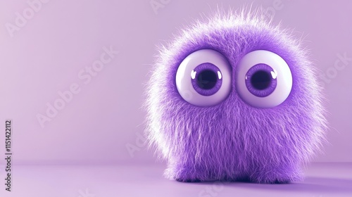 Fluffy Purple Monster Standing Against a Lavender Background..