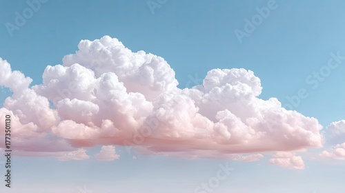 Fluffy White Cumulus Clouds Illuminated by Soft Pink Sunset Light Against a Clear Blue Sky