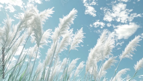 grass, fluffy, white, sky, cloud, blue, nature, summer, plant, flower, breeze, wind, field, meadow, vegetation, landscape, scenic, beauty, peaceful, calm, fresh, spring, autumn, natural, photorealistic, grassy, flora, foliage, green, scenic view, botanical, wildflower, pretty, relaxing, dreamy, whimsical, soft, light, gentle, vibrant, decorative, texture, pattern