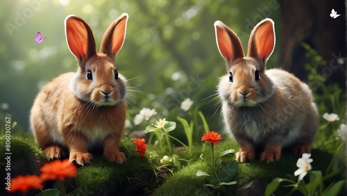 rabbit, rabbit, animal, mammal, garden, grass, green, outdoors, nature, wildlife, cute, adorable, fluffy, family, group, springtime, spring, kit, foraging, hopping, playing, daytime, meadow, rural, peaceful, serene, herbivore, teeth, ear, whisker, tail, wild, leisure, peace, innocence, young, gentle, playful, curious, exploring, clean, pink nose, hop, twitch