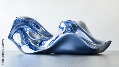 fluid motion sculpture, premium blue wave pattern, smooth glossy surface, pristine white environment, graceful flowing forms, high-end digital art, ethereal atmosphere, professional lighting setup