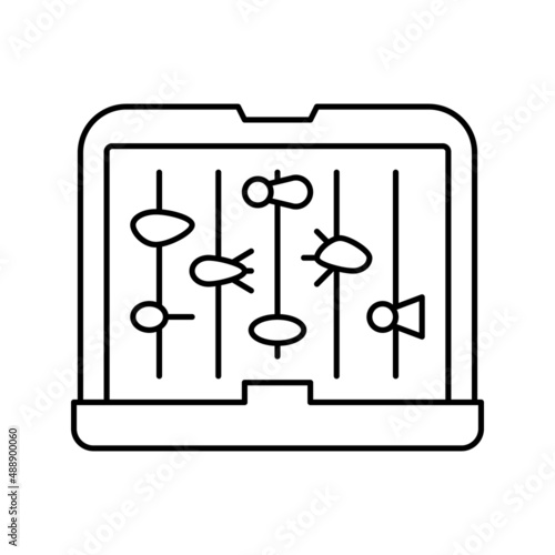 fly, fishing, box, vector, icon, line, signs, symbol, black, outline, illustration, shop, product, bait, plaster bandage, reel, spinning, kayak, boat, weight, accessory, pontoon, casting, rod, salt water, soft, spinner, hook, underwater, ice, camera, wader, braid, fish, tool, store, monochrome