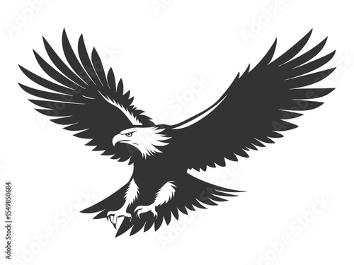 Flying bald eagle black and white silhouette vector, a bald eagle black silhouette vector isolated on a white background