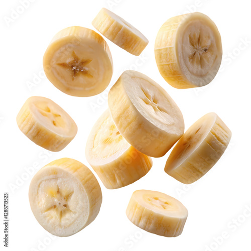 Flying Banana Slices: High-Res Image isolated on transparent background