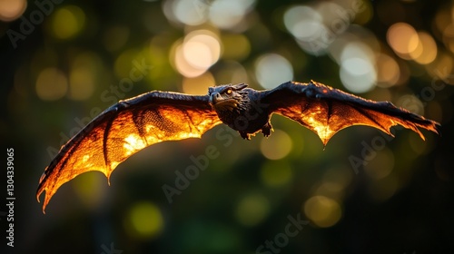 bat, flying, sunlight, wing, forest, animal, flight, mammal, nature, wildlife, bokeh, evening, sky, dusk, blur, illuminated, gliding, tree, autumn, outdoors, predatory, nocturnal, enchanting, motion, creature, habitat, warm, glow, environment, scenery, peaceful, natural, isolated, wilderness, outspread, silhouette, freedom, vibrant, alive, detail, biology, majestic, graceful, adventure, exploration, curiosity, mystical, serene