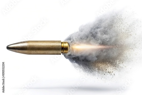 Flying bullet with a dust trail on a white isolated background Forced Perspective
