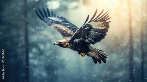 Flying eagle preparing to catch prey, AI generated image