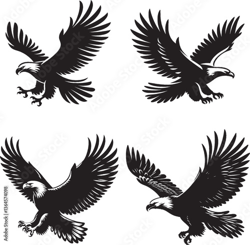 Flying Eagle Silhouette | Black and White Majestic Bird Illustration