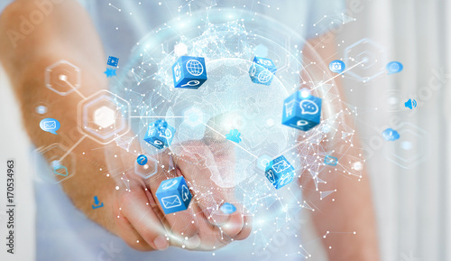 earth, planet, network, networking, connect, connection, sphere, globe, cyber, attack, hacker, hacking, datum, digital, business, businessman, man, cyberspace, electronic mail, electronic mail, cyberspace, technology, tech, cloud, worldwide, server, net, innovation, science, structure, system, interface, communication, abstract, high, dot, point, spot, plexus, particle, web, modern, blue, hand, holding, using, touching, finger
