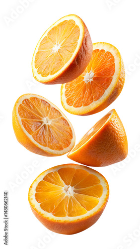 flying orange and half slices isolated on transparent background Remove png, Clipping Path