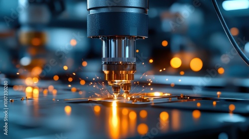 Focus on a precision machine tool emitting bright sparks as it operates, reflecting cutting-edge manufacturing and industrial innovation and precision work.