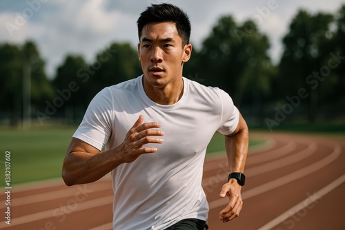 healthy lifestyle, performance, white shirt, determined, expression, motivation, activewear, endurance, lifestyle, exercise, physical, training, athlete, fashion, fitness, focused, healthy, routine, running, people, sport, image, photo, shirt, track, logotype, text, man, athletic