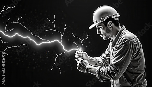 electrician, focused, working, electricity, dark, energy, power, profession, male, serious, glove, helmet, tool, spark, light, technical, industry, labor, safety, skill, black-and-white, creativity, intensity, expertise, hand, dynamic, vibrant, occupational, dramatic, contrast, daring, tension, monochrome, craftsmanship, determination, action, industrial, construction, no people, engineering, processing, technology, risk