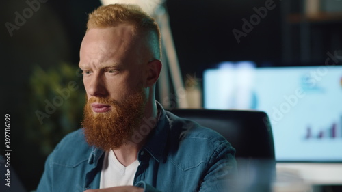 office, man, business, hipster, computer, laptop, working, looking, bearded, pensive, thinking, adult, reading, concentrated, portrait, person, focused, serious, casual attire, digital, guy, indoor, male, network, online, cyberspace, photogenic, message, night, putting, screen, professional, process, project, technology, manager, employee, using, work, datum, workplace, young, information, businessman, businessman, slow motion, red hair