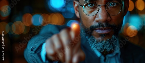success, focused, closeup, future, inspiration, intense, blur, confident, photogenic, shirt, progress, pointing, serious, style, goggles, business, urban, beard, orange, suit, vision, modern, innovation, leadership, portrait, determined, power, blue, night, formal, professional, fashion, city, dark, background, achievement, technology, man, light, jacket