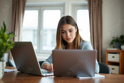 woman, working, laptop, home office, technology, productivity, sharpened, concentration, professional, freelancer, business, study, multitask, online, career, workspace, modern, desk, independent, job, serious, efficiency, entrepreneur, digital, smart, comfortable, innovation, education, self employed