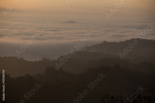 Fog mountain in the early morning sunrise
