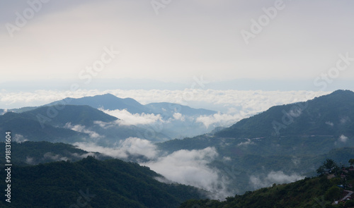 Fog over the mountain in cloudy day,beautiful landscape in Thailand.