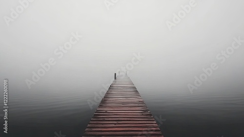 Foggy Pier Extending Into Calm Waters in a Serene Landscape of Tranquility and Mystery