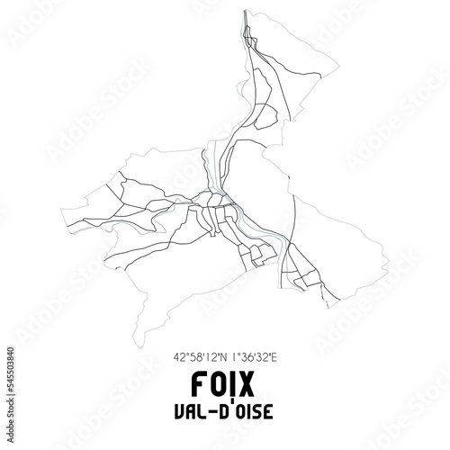 FOIX Val-d'Oise. Minimalistic street map with black and white lines.