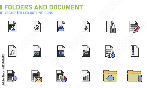 Folders and document icons for website, application, printing, document, poster design, etc.