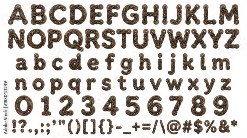 font alphabet in knotty cogwheel fractal decorative style from a to z numbers punctuation isolated on white background