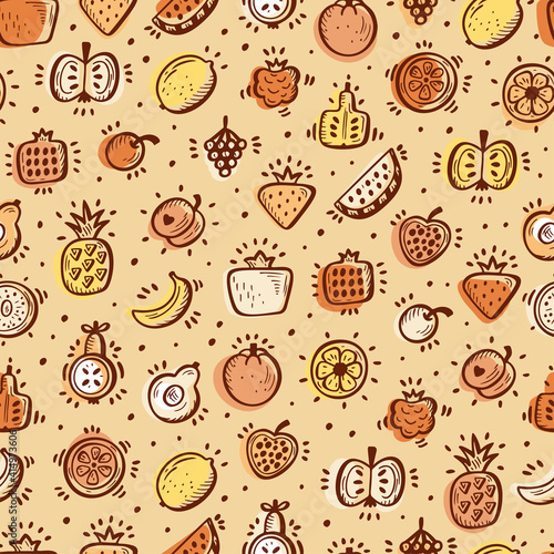 Food background. Doodle Fruits and Berries Seamless pattern. Vector illustration
