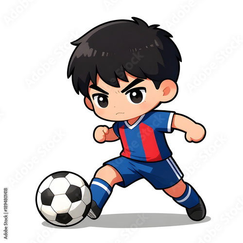 FOOTBALL, SOCCER. Young athlete, graphic style, in traditional sports equipment rich colored palette