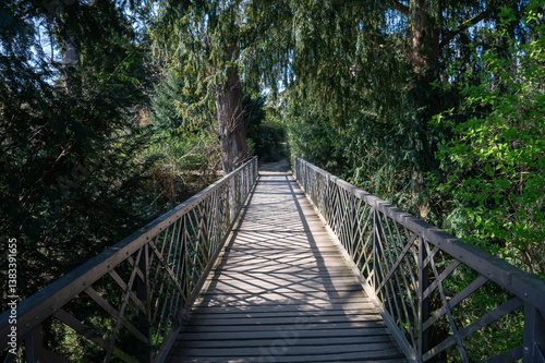 wood, tree, historical, nature, construction, pedestrian, park, green, architecture, old, footbridge, bridge, metal