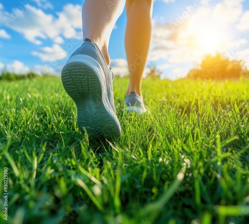 foot, grass, green, shoe, walk, running, nature, landscape, summer, ground, field, trail, path, sky, sun, light, bright, fresh, lawn, meadow, pathway, healthy, exercise, fitness, active, lifestyle, sport, joy, energy, inspiration, happy, movement, earth, life, peace, calmness