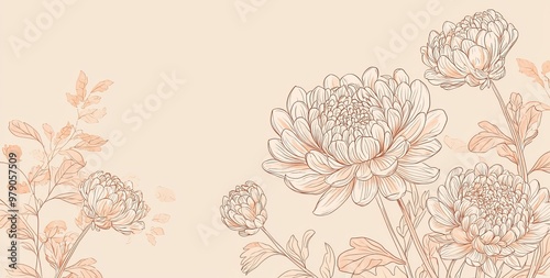 For wedding invitations or wall art, a floral background or wallpaper with bouquets of chrysanthemums and other flowers. Modern illustration. Premium inks.