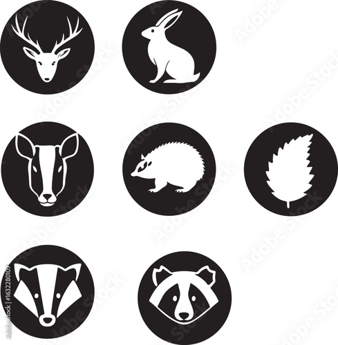 animal, icon, forest, wildlife, silhouette, visual, clip, picture, graphic, asset, group, buck, representation, image, artwork, scalable, stag, environmental, mammal, identity, creature, drawing, print, head, conservation, contour, isolated, shape, label, rabbit