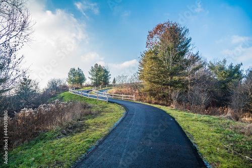 canada, winter, bend, brown, cold, countryside, curved, day, fall, forest, frost, glacé, landscape, leaf, nature, nobody, outdoors, outside, path, road, scenic, season, tree, wild, wood