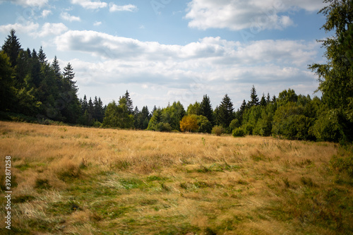 sky, landscape, nature, forest, grass, tree, field, meadow, cloud, green, blue, summer, tree, rural, autumn, mountain, country, road, countryside, view, cloud, wood, scene, beautiful, hill
