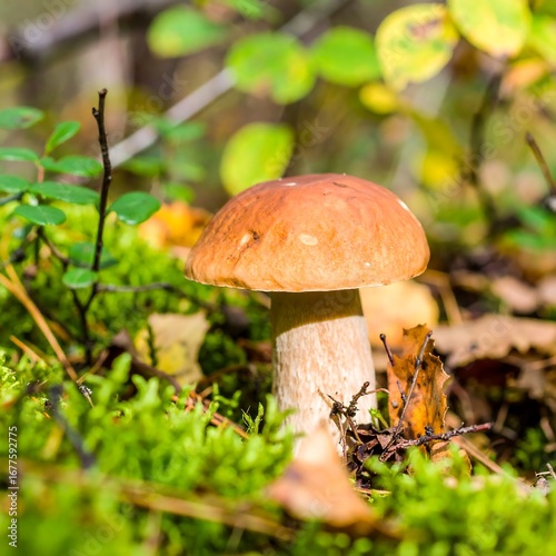 mushroom, forest, autumn, leaf, moss, nature, fungal, edible, wild, ground, closeup, detail, brown, orange, beige, green, sunlight, wet, flora, fauna, organic, growth, wildlife, landscape, botanical, macro, photo, wood, specimen, healthy