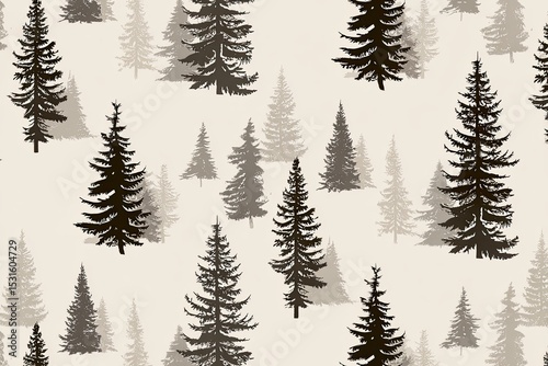 pattern, forest, tree, fir, pine, evergreen, nature, timberland, background, graphic, design, texture, seamless, repeat, silhouette, shades, brown, dark, light, grey, beige, decor, illustration, vector, winter, landscape, calm, peaceful, rustic, print, fabric, paper, wallpaper, background, modern, vintage, subtile, art, artwork, image, wood