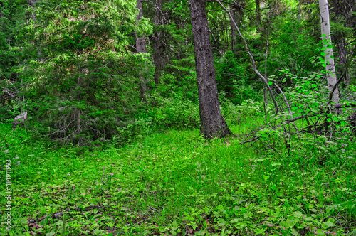 Forest with bright green foliage during daylight