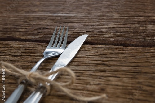 Fork and butter knife tied up with a rope