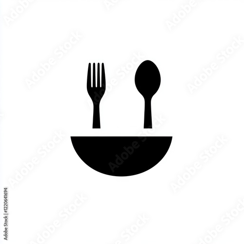 fork, spoon, bowl, food, meal, kitchen, eatery, eating, utensil, cutlery, dish, dine, dinner, lunch, cookware, equipment, silver, stainless, tool, flatware, table, ware, set, elegant, serving, metal, black, white, icon, signs, symbol, design, graphic, object, vector, illustration, menu, chef, cafes, cook, cookery, eat, plate, service, tableware, place, culinary, presentation